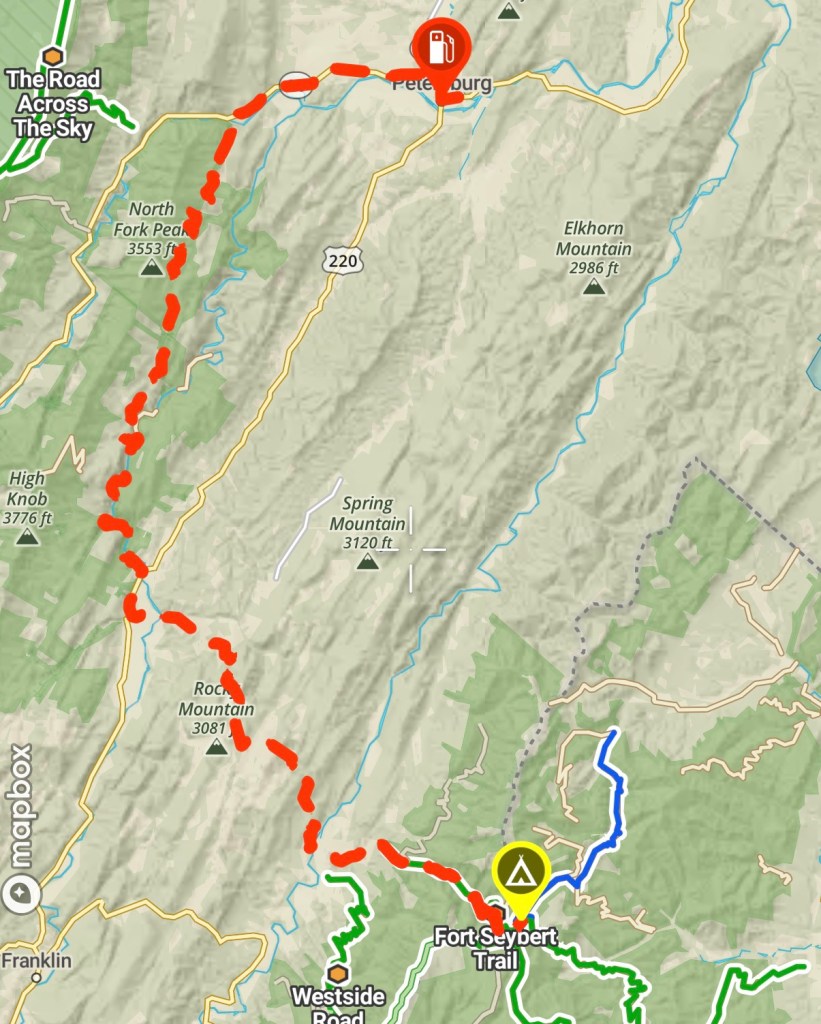 Following our resupply in Petersburg, we set out for camp via the Smoke Hole Road, a scenic paved road nestled between the North Mountain and Cave Mountains in the Allegheny, closely following the Potomac River. This road sits between the two mountains within a half-mile deep canyon, named after the characteristic mist that rises from the river. It was the perfect way to be welcomed into the region we would call home for the next two nights. We turned off of Smoke Hole eastward towards Fort Seybert, looking to find a dispersed site (our preferred way to camp) part-way through the it in Washington National Forest.
